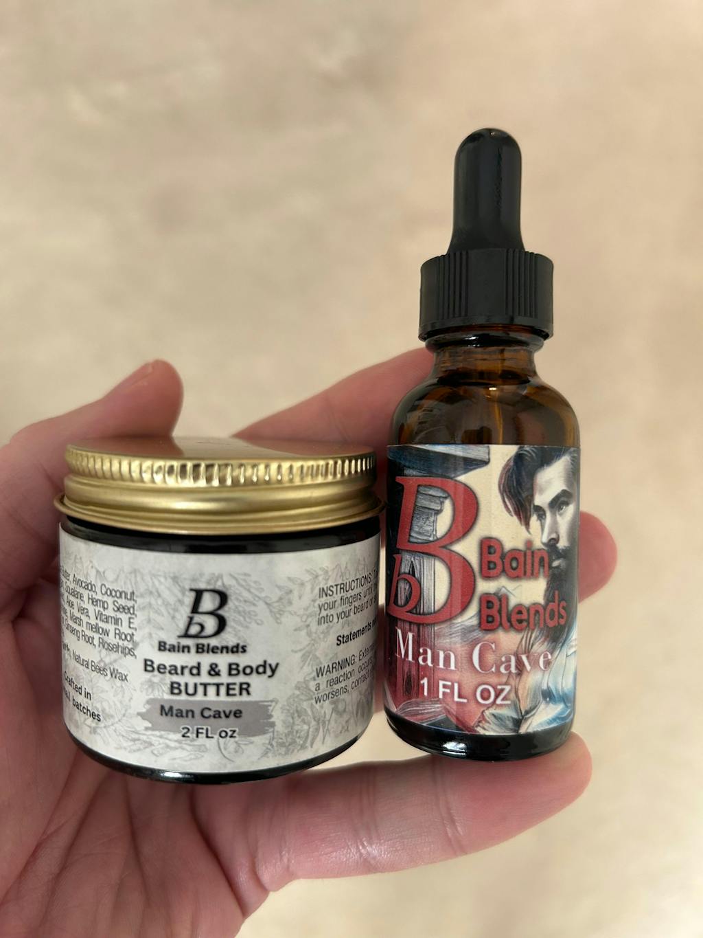 I went with the Herbal Grey Beard Blend 20% more Castor blend. Perfect viscosity for my beard. You get that syrupy cherry scent on first whiff. I can kind of get the Dr. Pepper spice in there, though I'd prefer that be brought up to the cherry level. I can detect the almond woodish blend as well. Dr. Bain is a home run in my book. Yall gotta give this one a try.