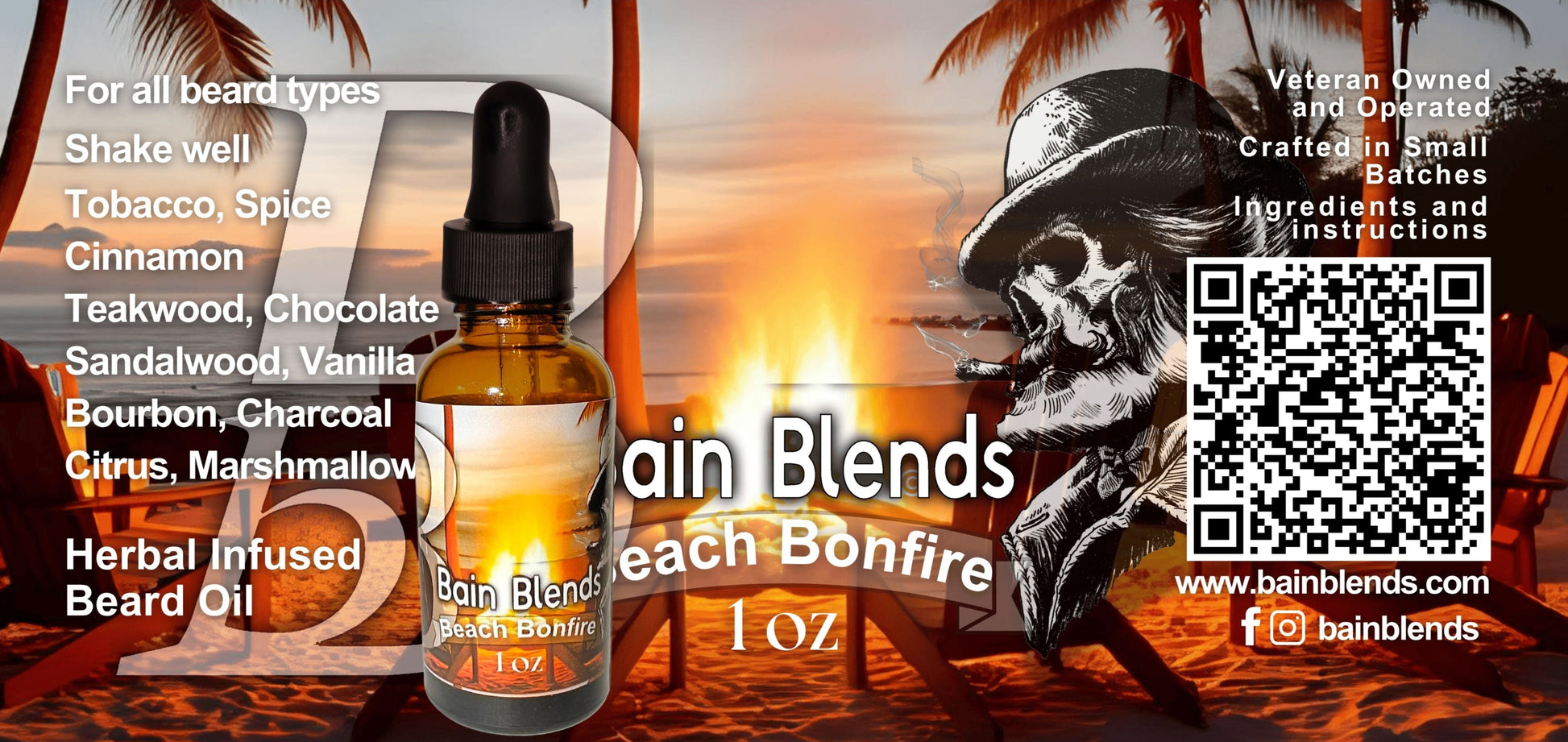 Beach Bonfire, 1 oz Beard Oil (Tobacco Fragrance, Citrus, Teakwood, Chocolate, Cinnamon, Bourbon, Charcoal, and Marshmallow)