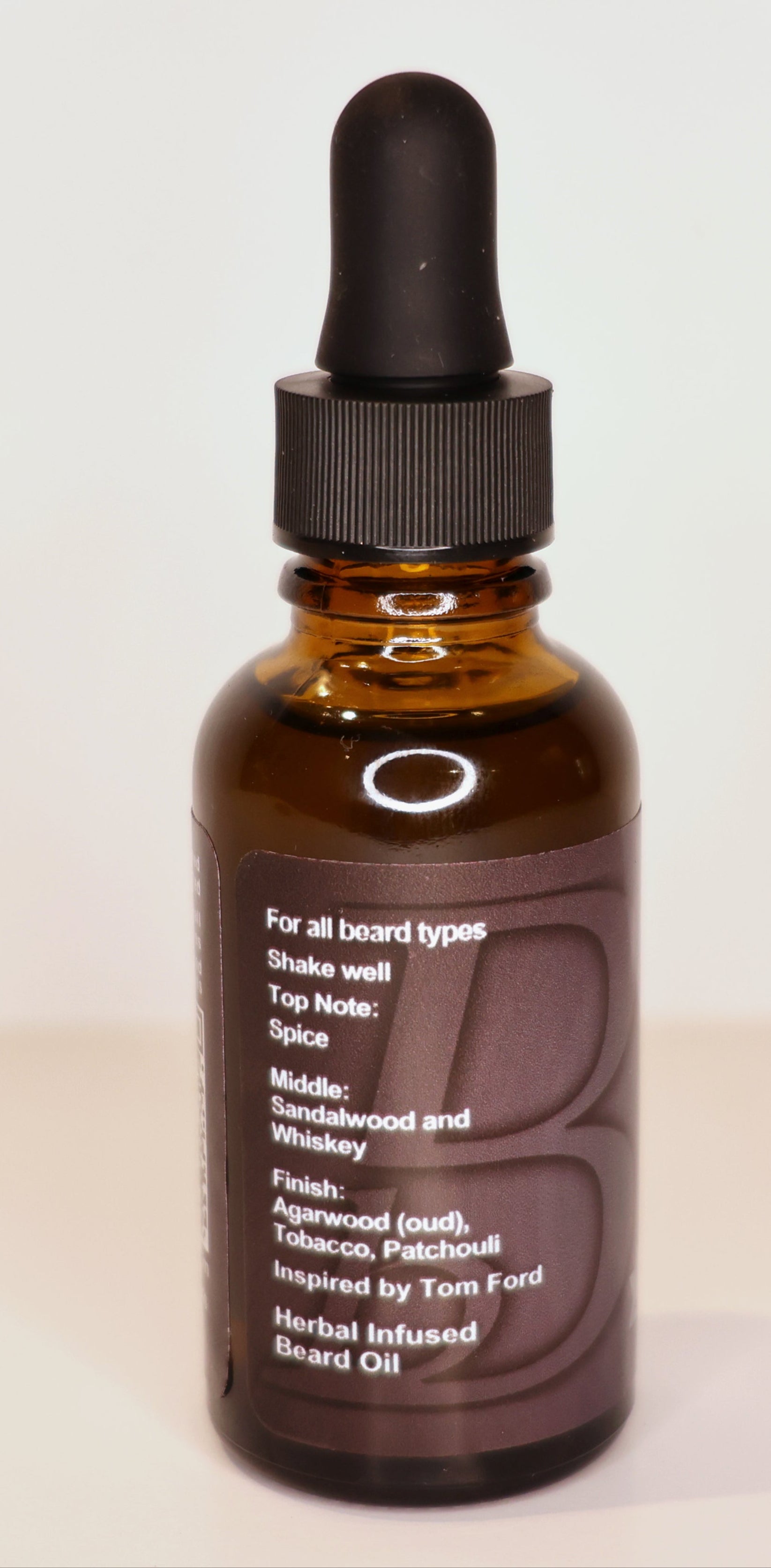 Tobacco Oud This 1 oz. Beard Oil Tobacco Oud (Tom Ford dupe) has a well-rounded, refined, and luxurious aroma. Spice is the dominant note, complemented by Sandalwood and whiskey in the middle, and finished off with agarwood, tobacco, and patchouli. Experience the delightful and alluring scent of this expertly-blended product and treat yourself today.