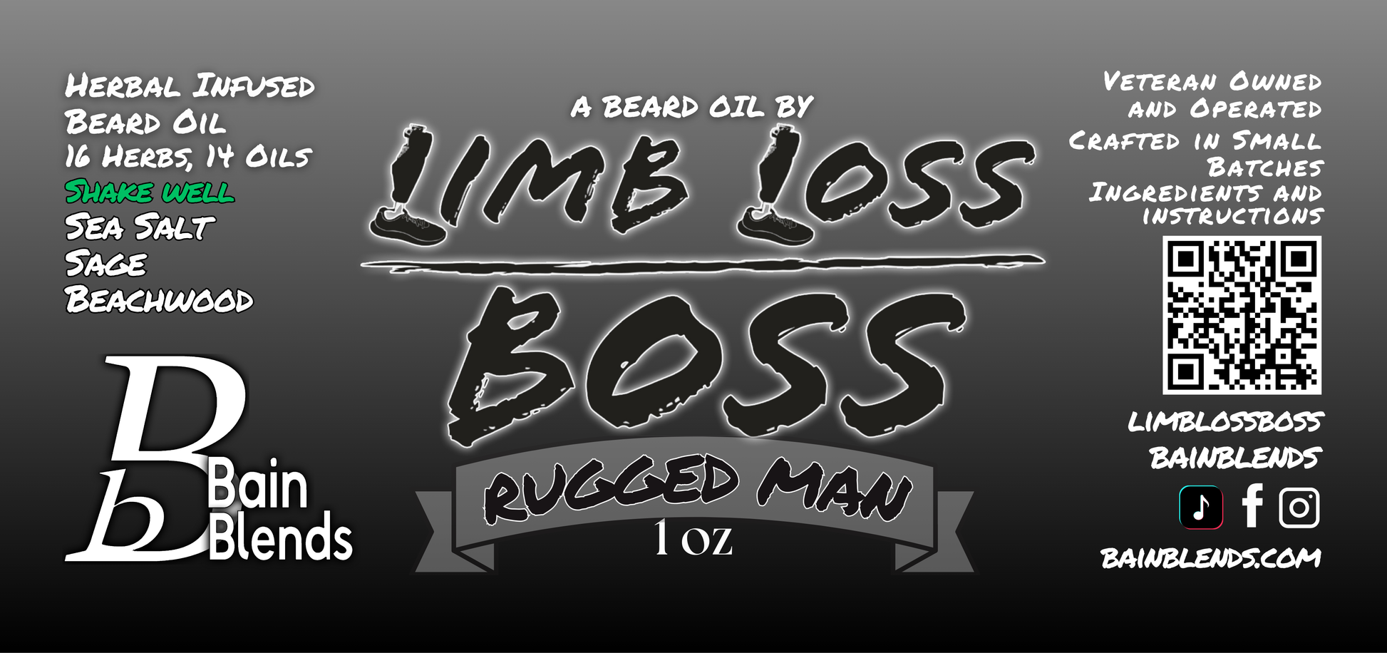 Limb Loss Boss and Bain Blends present RUGGED MAN, a 1 oz blend crafted for those who live hard and value authenticity. This scent combines the sharp, invigorating notes of sea salt with grounded sage and the robust warmth of beachwood. Top notes of sea salt, orange peel, and fresh grass evoke the feeling of a crisp coastal morning, while the heart of eucalyptus and sage adds an earthy depth. The aroma settles into a solid base of teakwood, delivering a strong, dependable finish. Rugged yet refined, it’s the perfect fragrance for the working man who carries the spirit of the sea and the strength of the shore in every day.