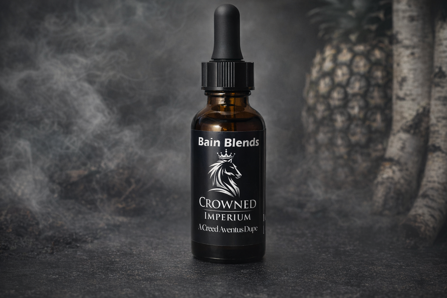 This release fuses our slightly smokey citrus interpretation of Creed Aventus with a best‑attempt duplication of its iconic profile — bright pineapple, birch smoke, black currant depth, and regal musk — all rebuilt in the Bain Blends style.