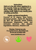 All natural deodorant. Featuring Coconut Oil, MCT oil, Arrowroot powder, Shea butter, Jojoba oil, Olive Oil derived Squalene oil, naturally mined sodium bicarbonate, Magnesium Oxide Activated carbon, Beeswax and Vitamin e oil. Essential oils of Sage and a refreshing Driftwood balance out the scent profile allowing for the control of odor causing bacteria and provide a long lasting pleasant smell.