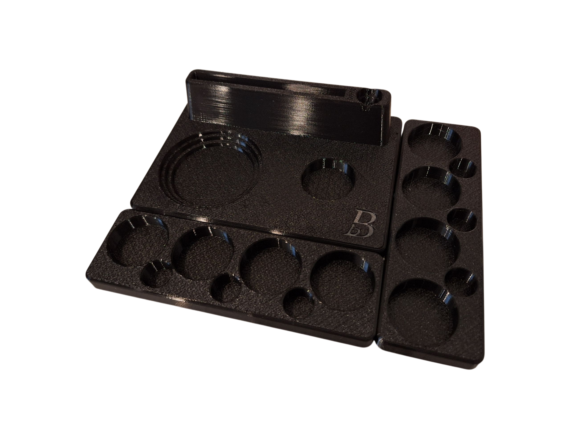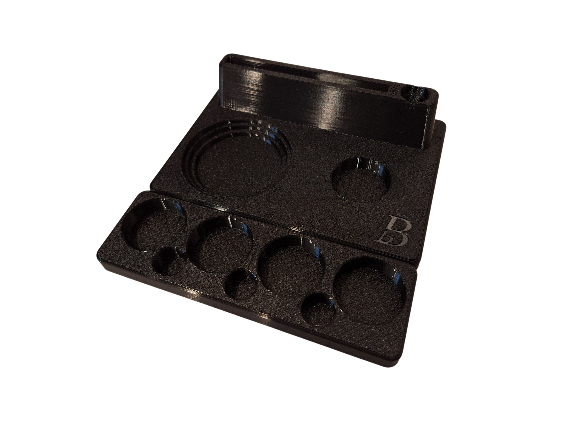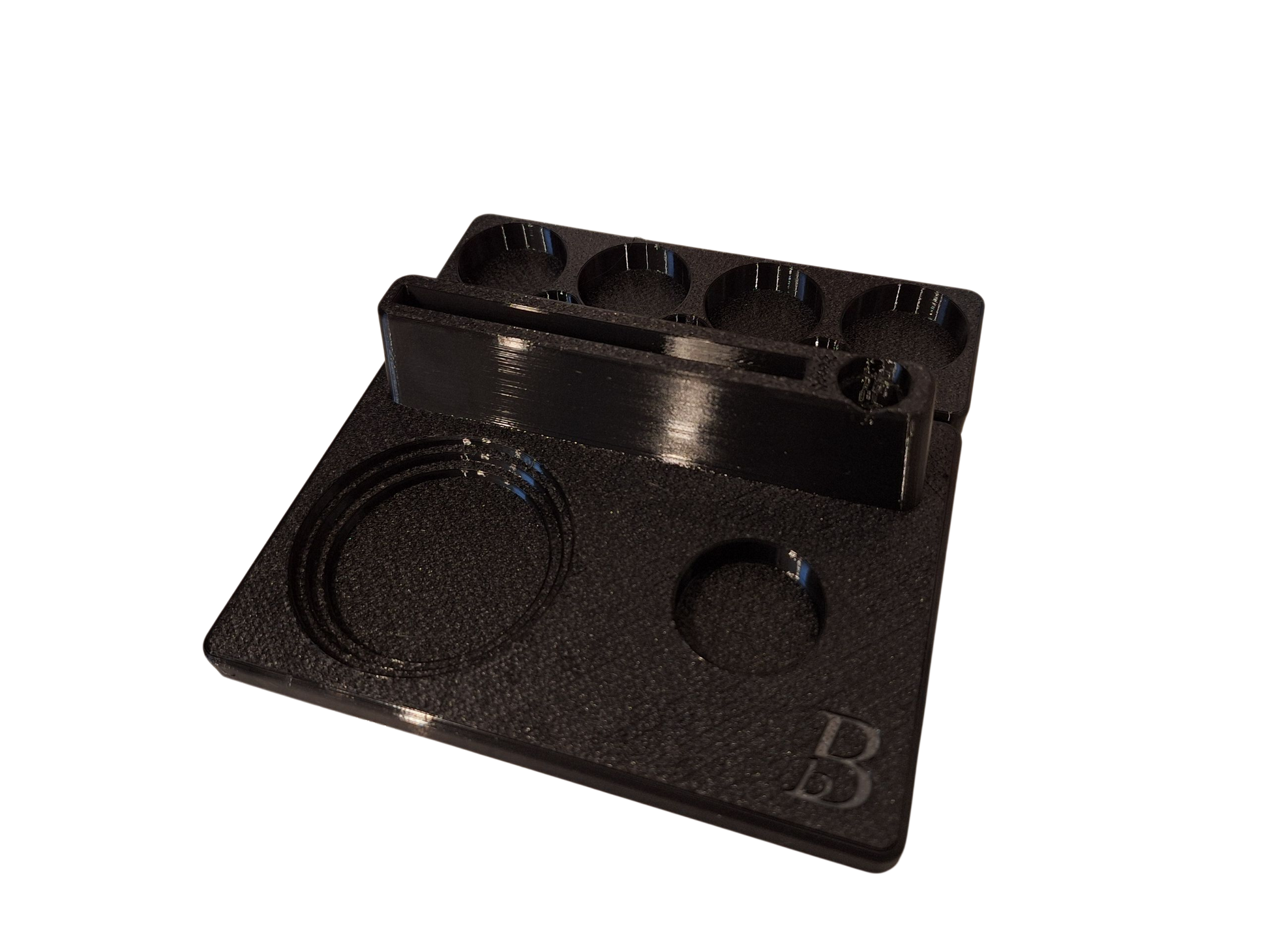 Keep your beard essentials neatly organized while ensuring your Bain Blends Oil is always within reach. This clever caddy includes a 5ML reservoir that soaks your included Boxwood comb with premium Bain Blends Frag Out oil, ready for use right after your shower. The set comes with a 5ML bottle that fits perfectly into the caddy, refilling the reservoir effortlessly. Cleaning is simple with a pipe cleaner, making maintenance quick and convenient. Elevate your grooming routine with this all-in-one solution designed for ease and effectiveness.