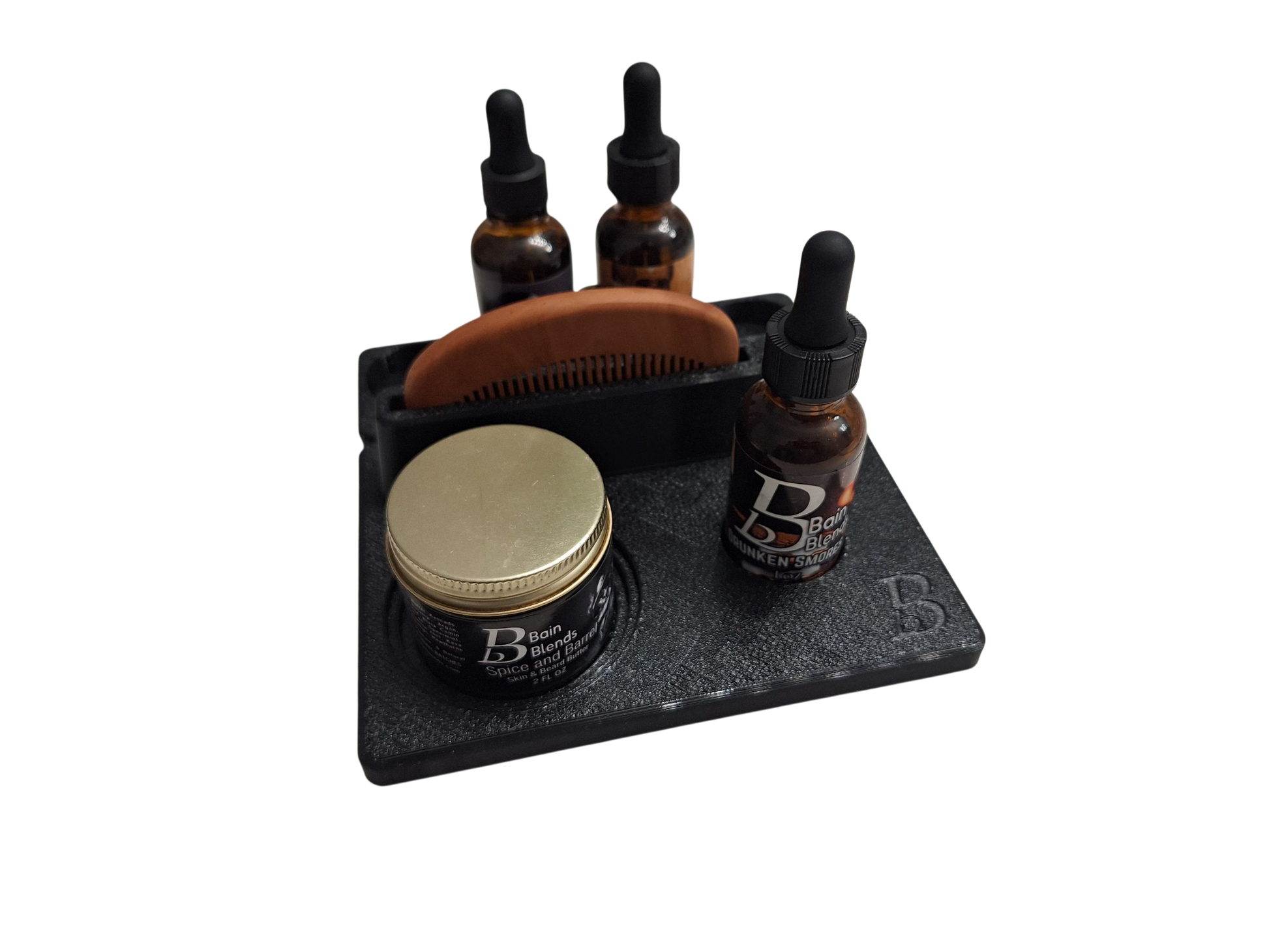 Product Caddy & Beard Primer Reservoir w/ extension and 1, 5 ML oil, custom fit comb, and 1, 1 oz oil of choice