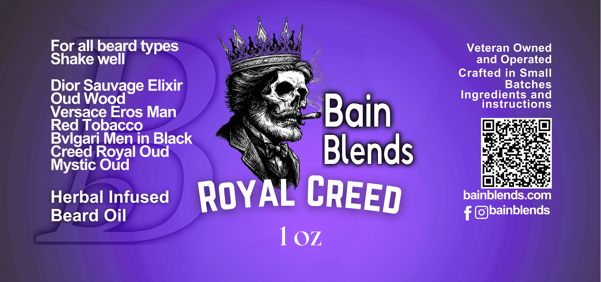 Royal Creed, 1 oz Beard Oil (Dior Sauvage Elixir, Oud Wood, Versace Eros Man, Red Tobacco, Bvlgari Men in Black, Creed Royal Oud, Mystic Oud) (Herbal or non Herbal Blend)